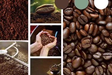 Dopo la moodboard, ho disegnato a mano i bozzetti: inizialmente ho voluto riprendere elementi come la tazzina e il chicco di caffè, provando vari stili, dal chicco realistico a quello più stilizzato, concentrandomi poi sulle composizioni del chicco e del logotipo arrivando poi al logo finale