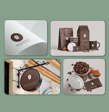 Infine, sono stati realizzati mockup in contesti reali (come tazze, packaging, insegne…) per testare la resa del logo, è stato fatto anche un manuale del brand che ne definisce l’uso corretto, le gerarchie tipografiche e le applicazioni grafiche, per assicurare una comunicazione sempre chiara, uniforme e fedele ai valori di Biancaffè.