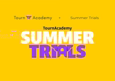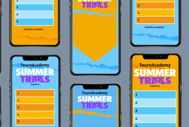 Una fase centrale è stata la progettazione del logo custom: unendo il logo di TournAcademy con la scritta "Summer Trials", ho studiato un incastro grafico in cui il simbolo di TournAcademy si integra perfettamente con la lettera "A" di "Trials". Questo lavoro rende il brand coerente con il tema dell’evento.
